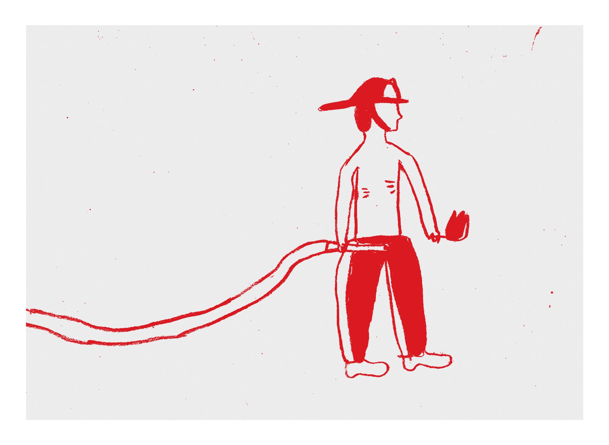 Printed as part of a five-illustration set along with Nadador, Machetero, Melting heart, the "bomberito" (firefighter) is a character full of contradictions. Born to burn, forced to put out.